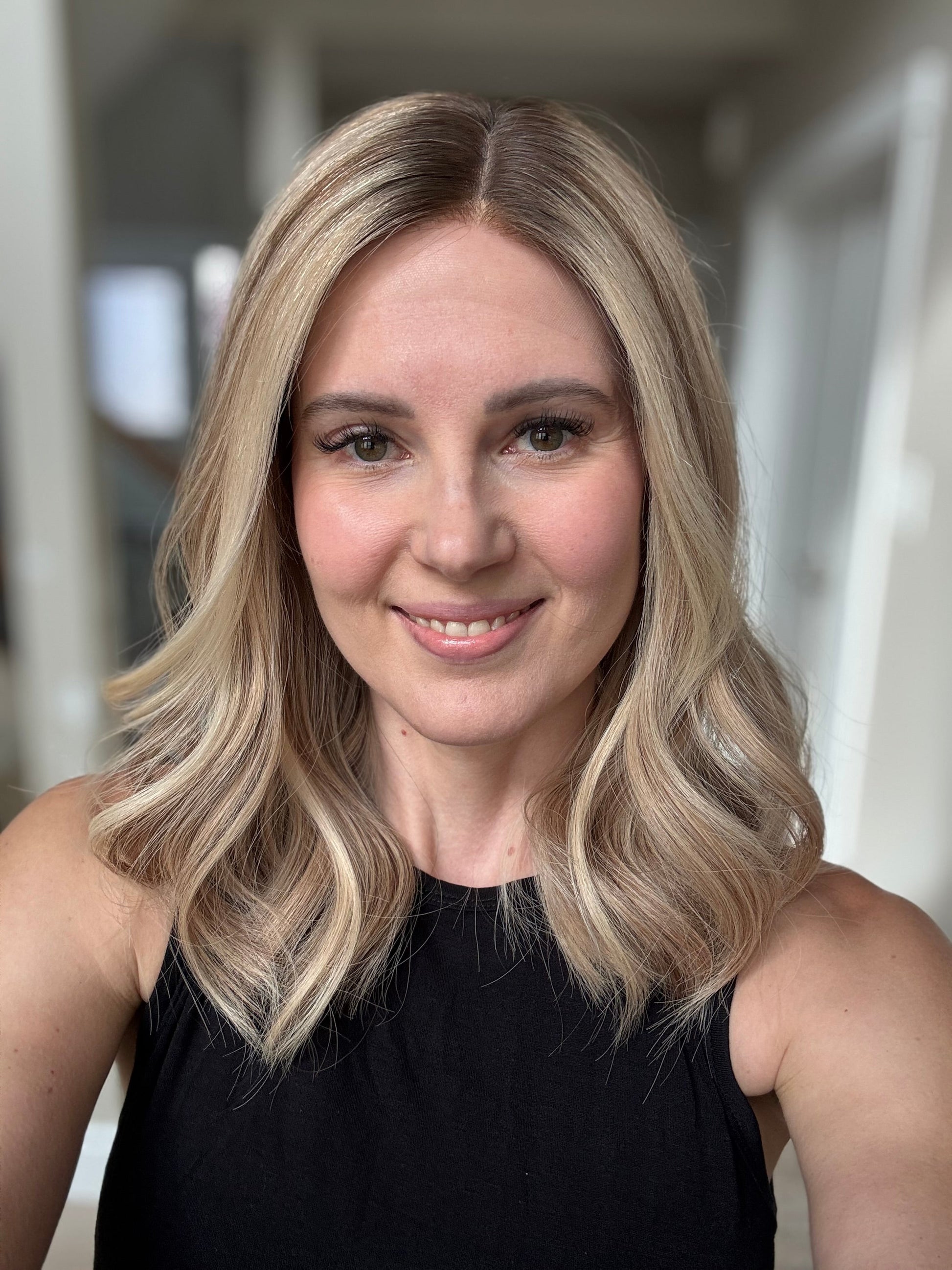 * Color: Dark blonde with subtle dimension and a dark brown root.
