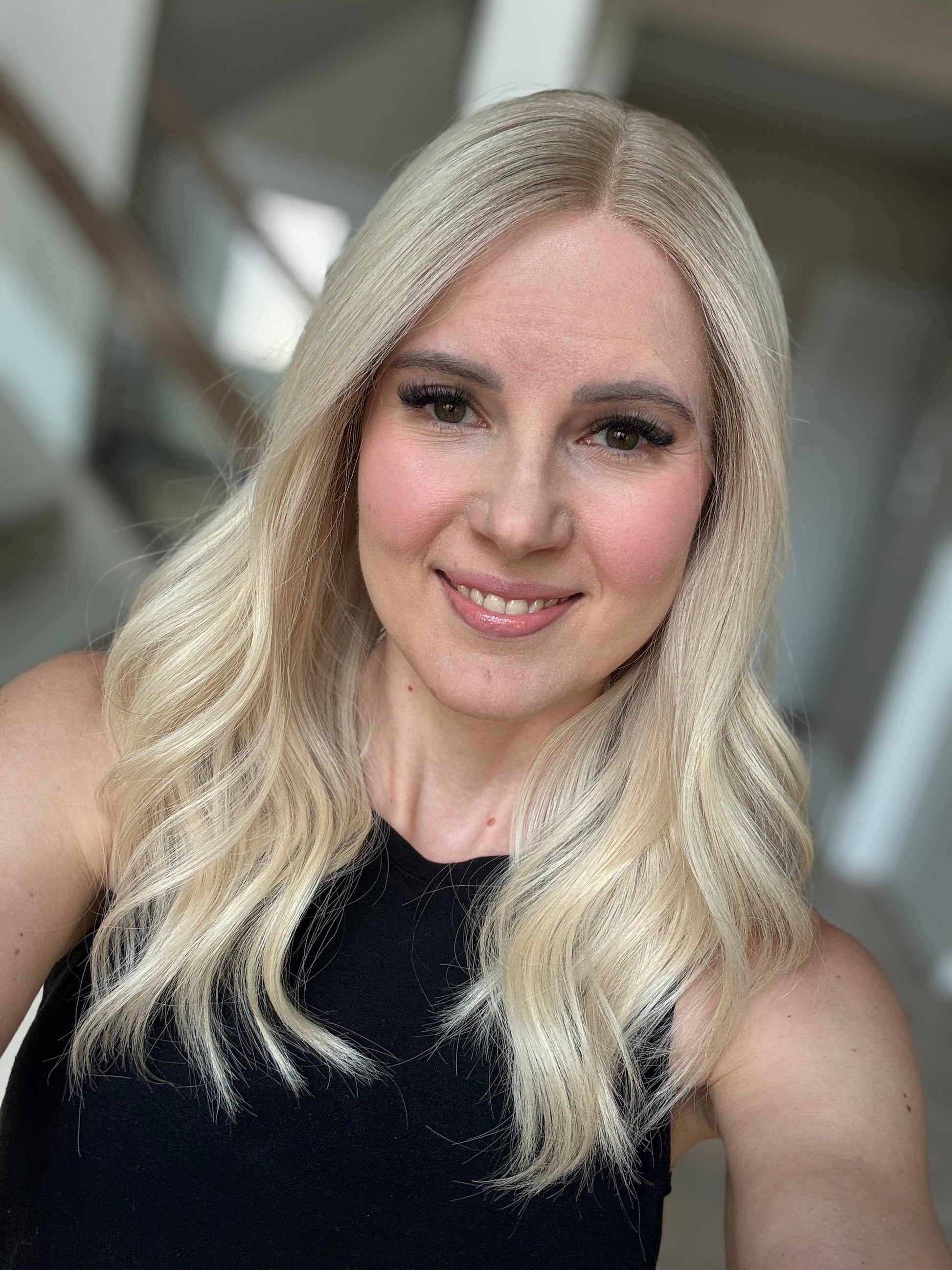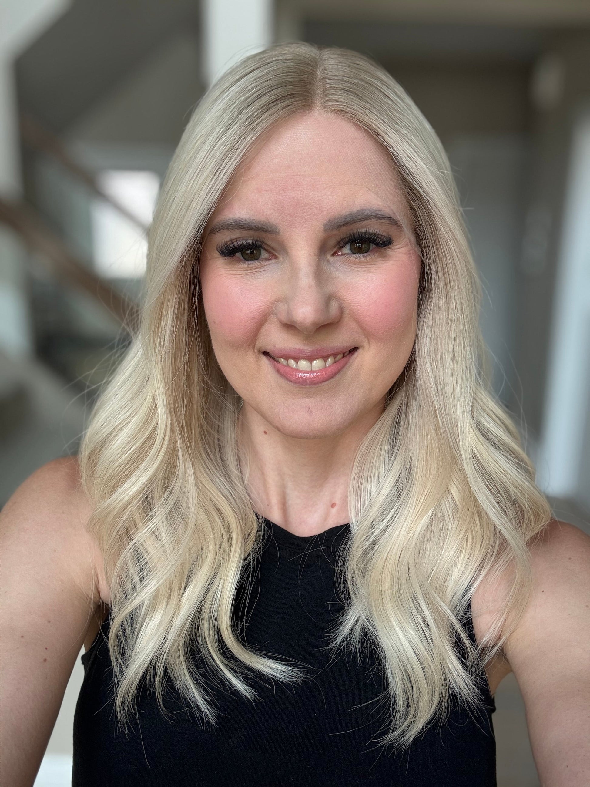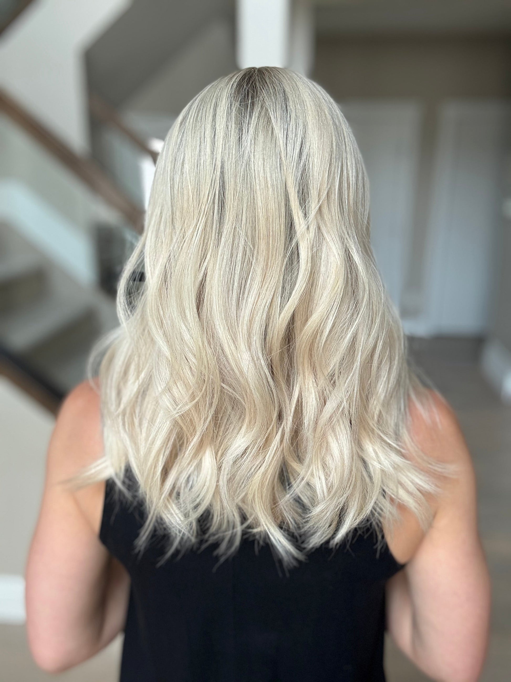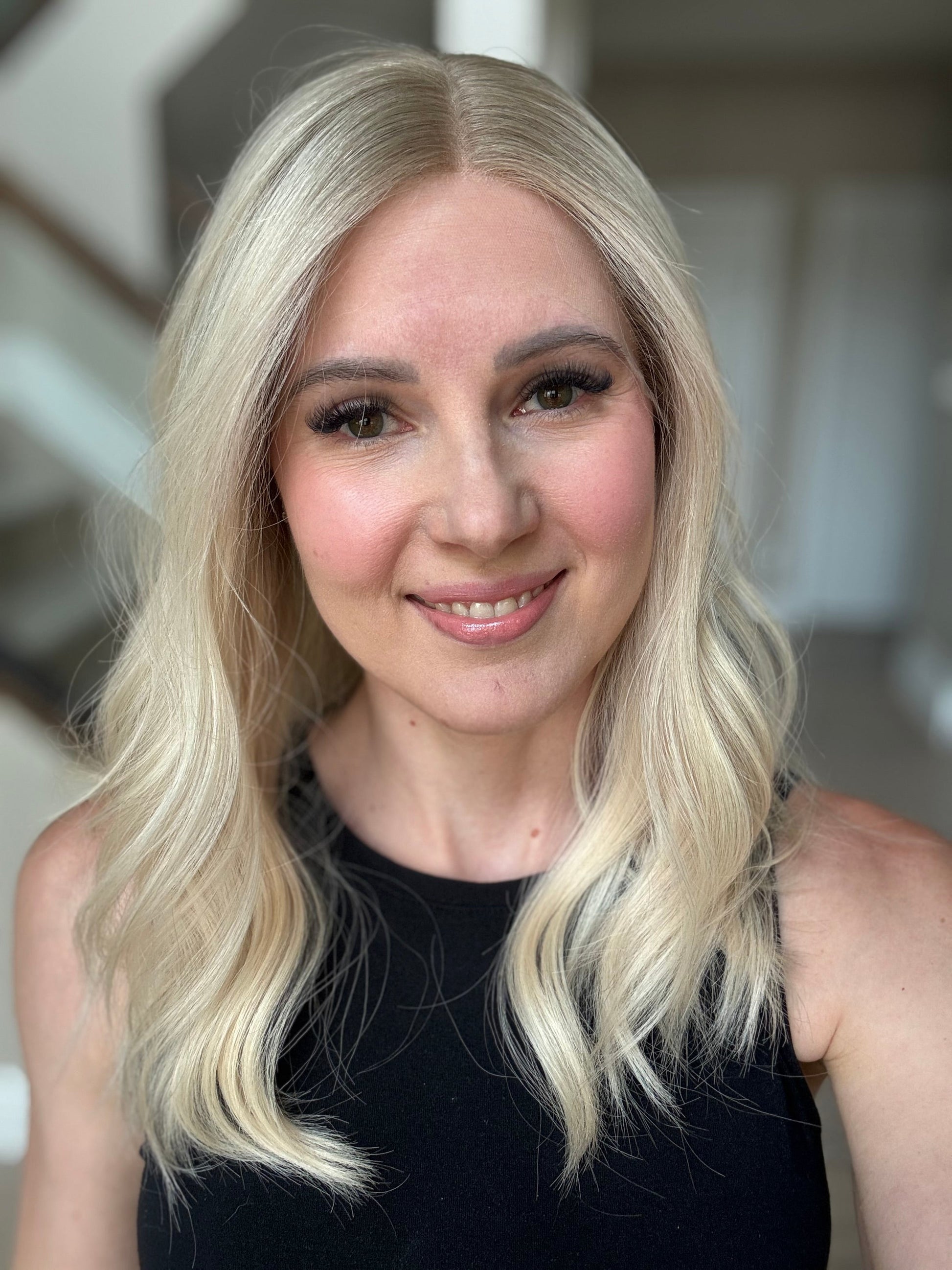 * Please note wig is shown with a small amount of face powder dabbed into the part-line for demonstration purposes. We recommend clients use powder rather than bleaching the knots as it extends the longevity of the wig and often looks more realistic.
