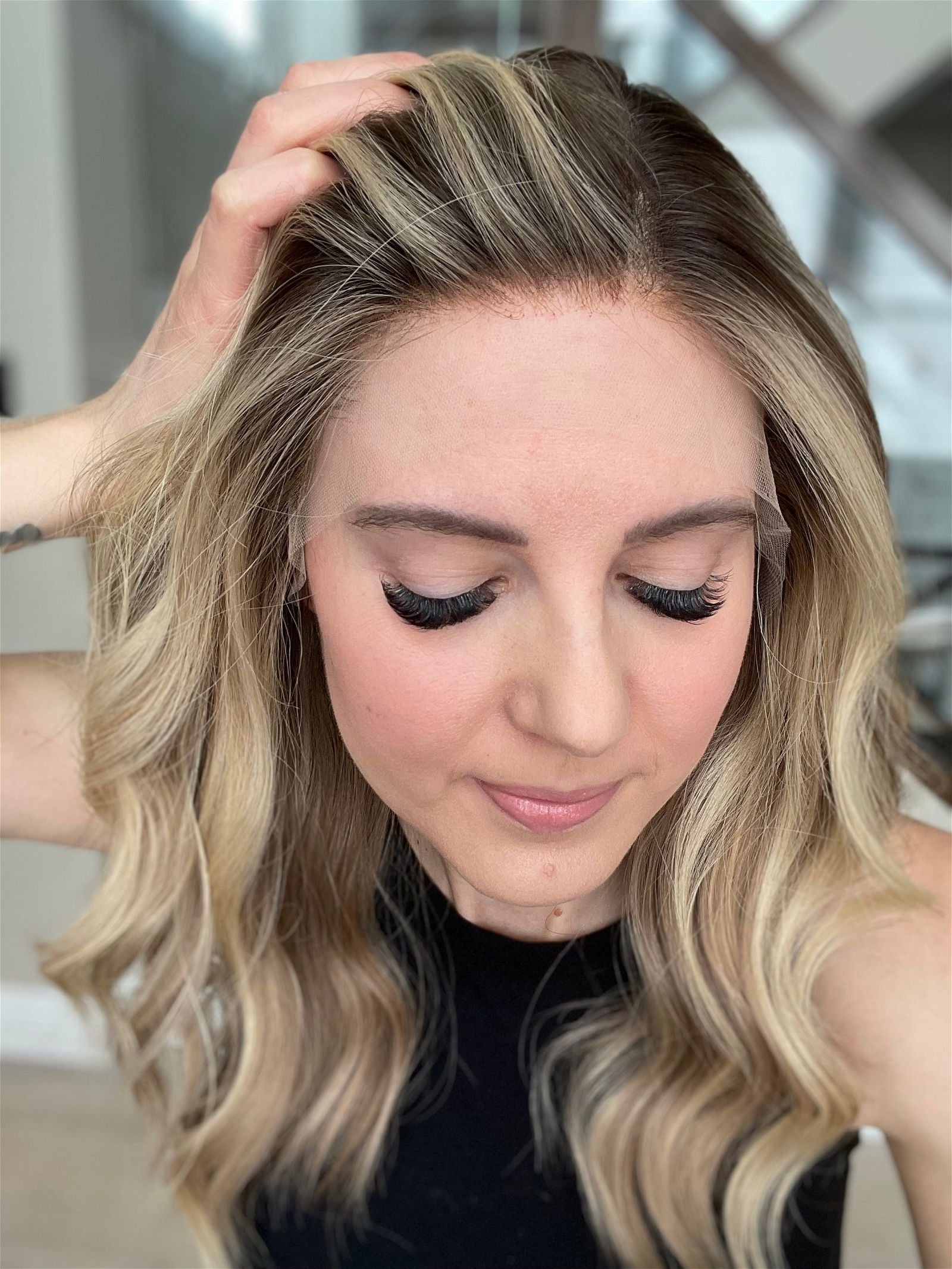 * Please note wig is shown with a small amount of face powder dabbed into the part-line for demonstration purposes. We recommend clients use powder rather than bleaching the knots as it extends the longevity of the wig and often looks more realistic.