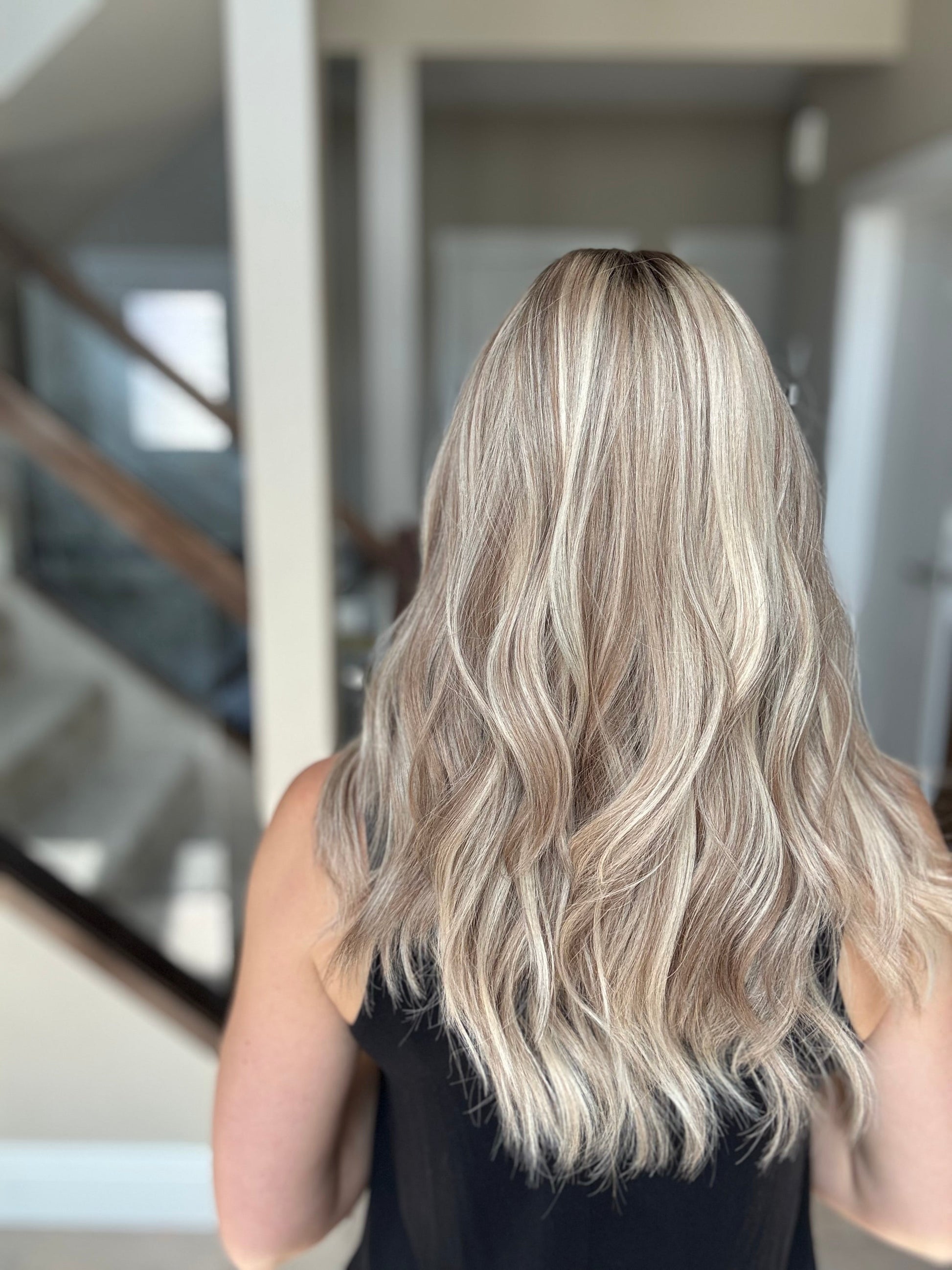* Color: Neutral light blonde with lots of dimension and a medium brown root.