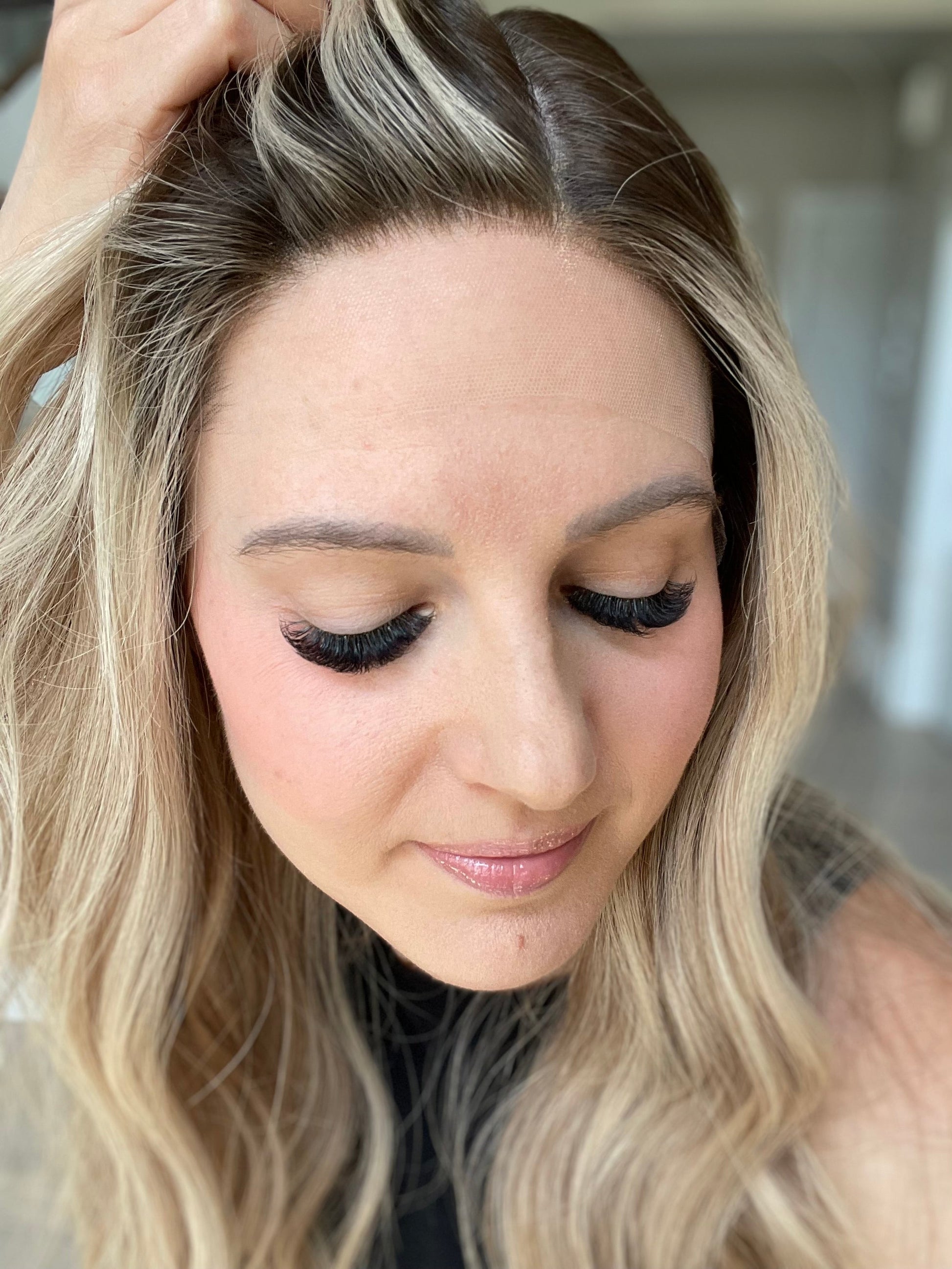 * Color: Neutral medium blonde with dimension and a dark brown root.