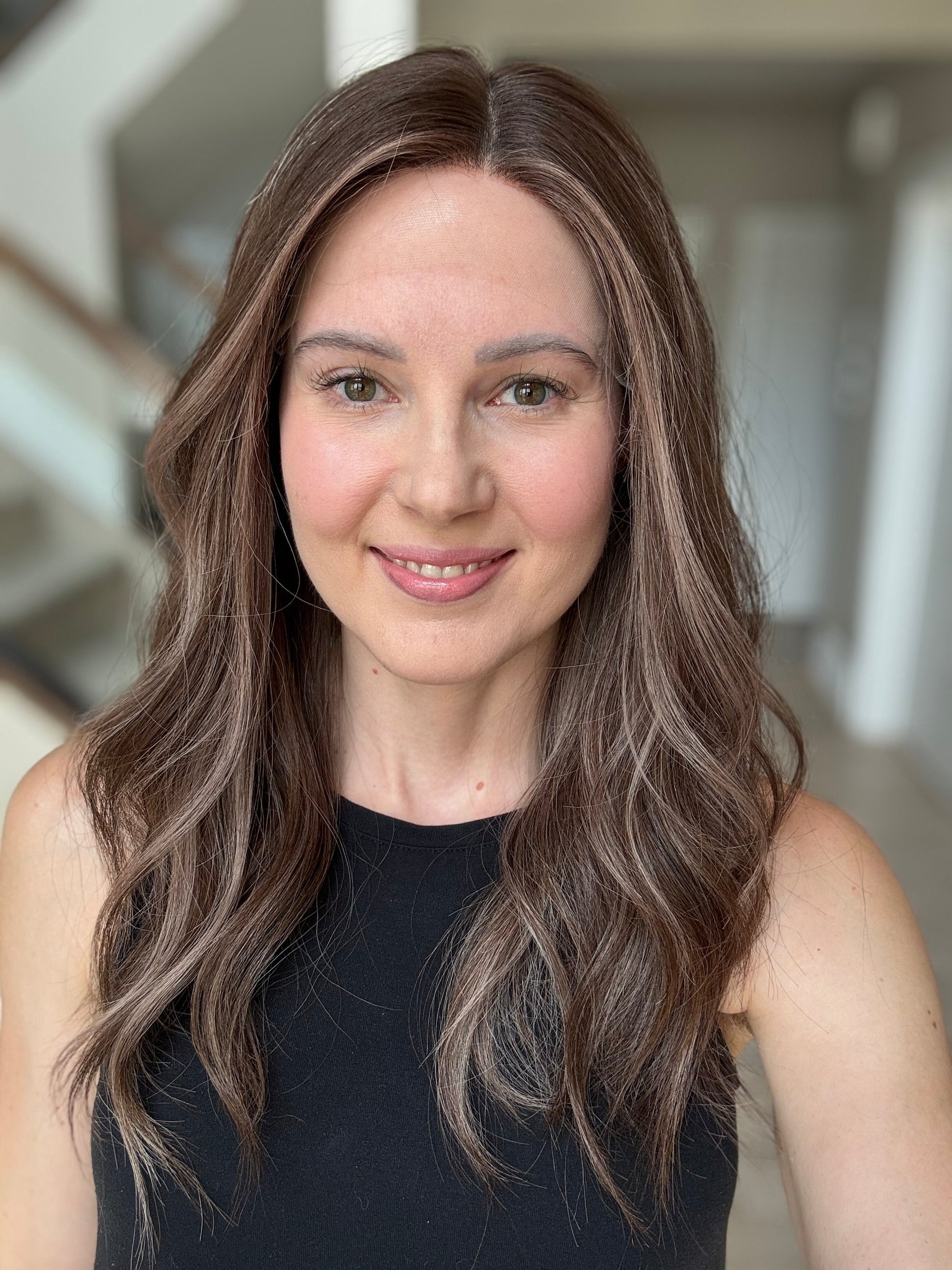 * Color: Medium brown with chocolate beige blonde balayage.