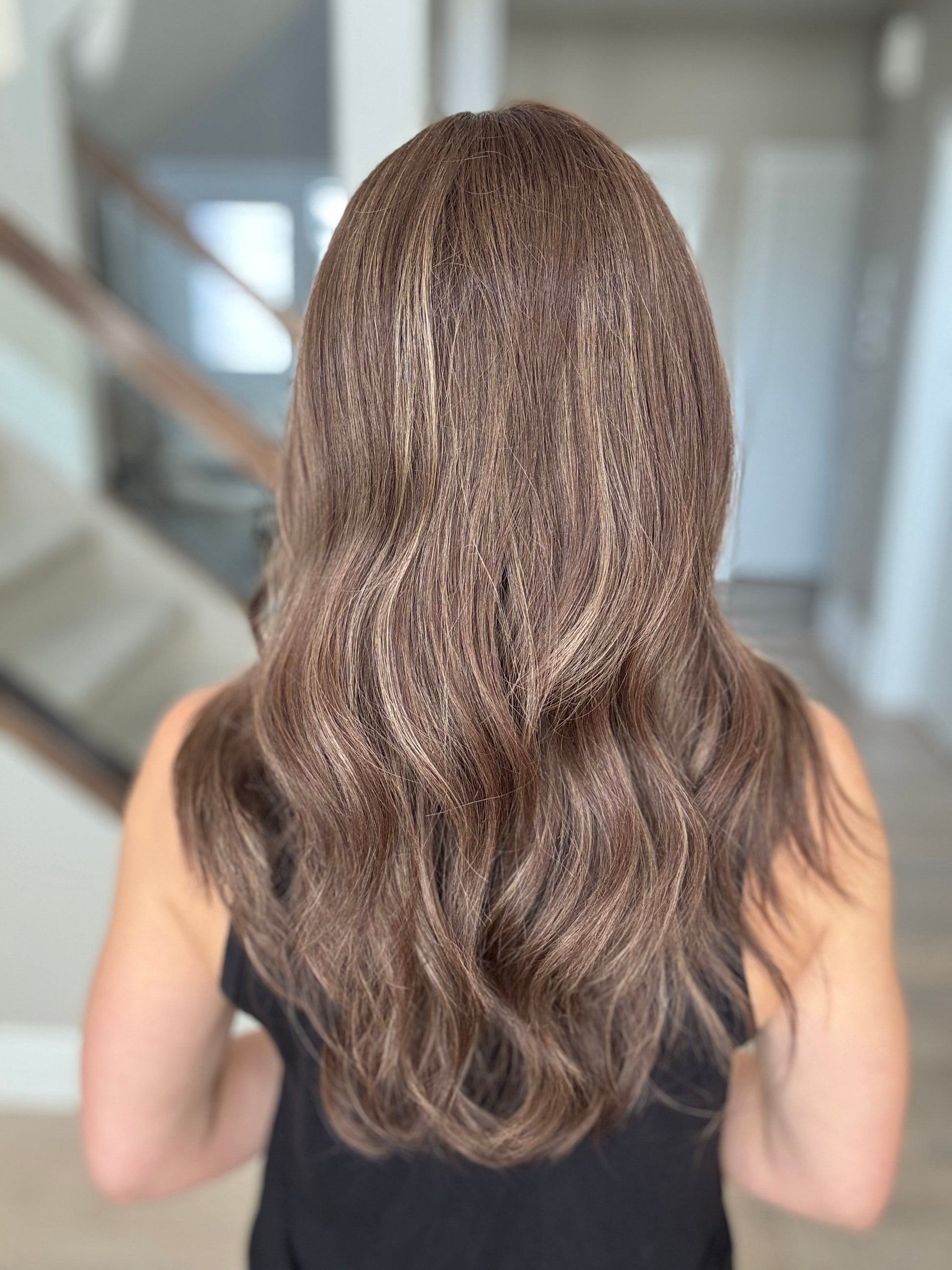 * Color: Dark brown with beige blonde balayage.