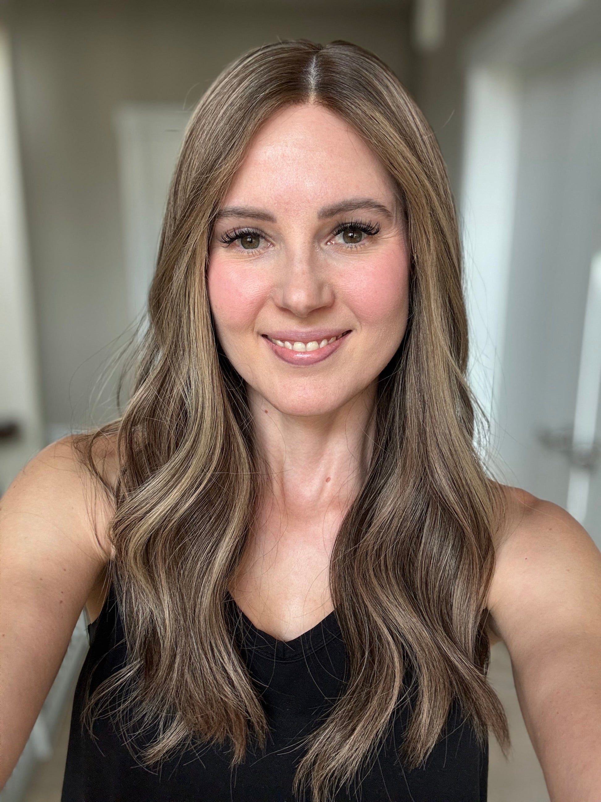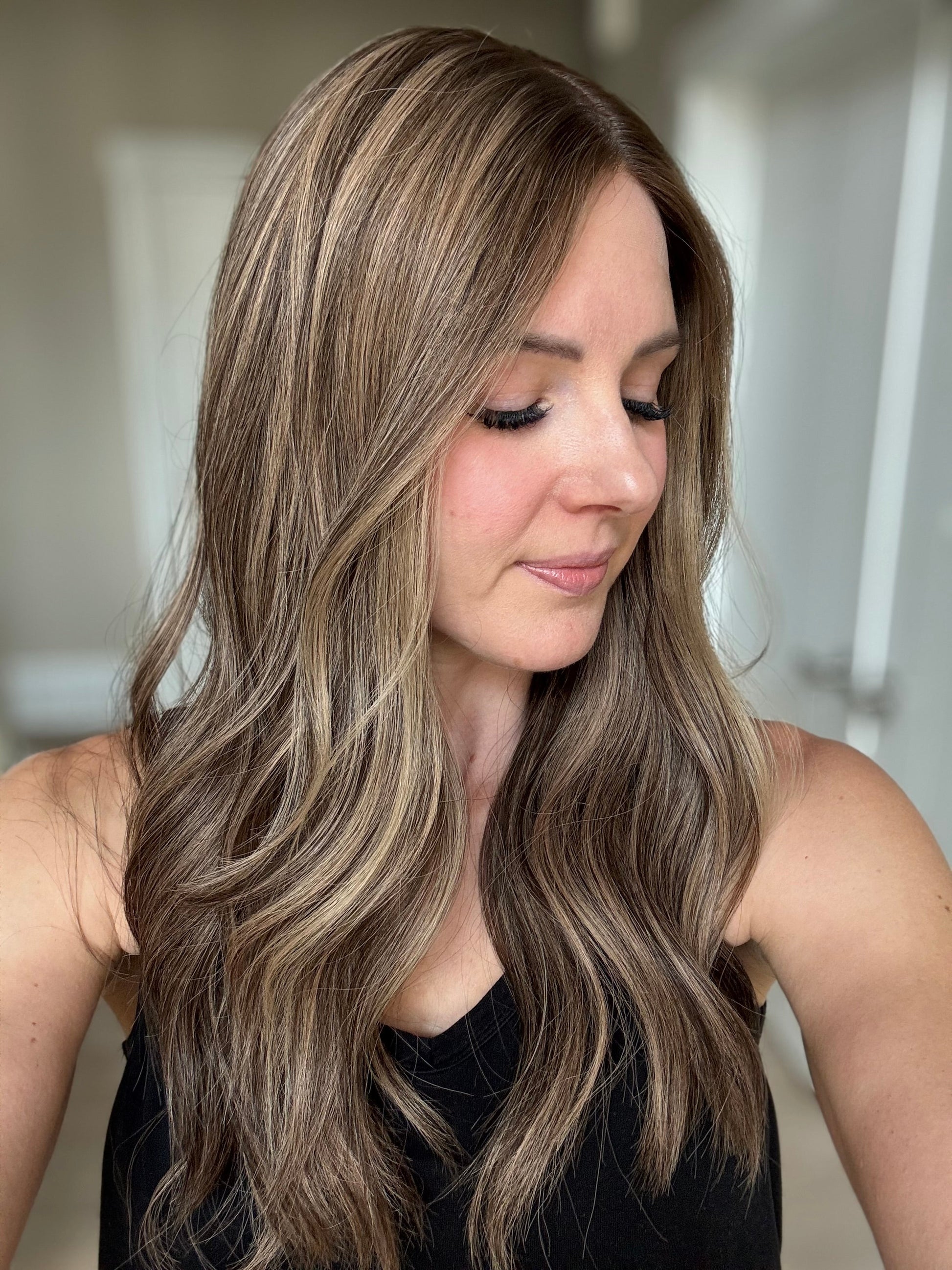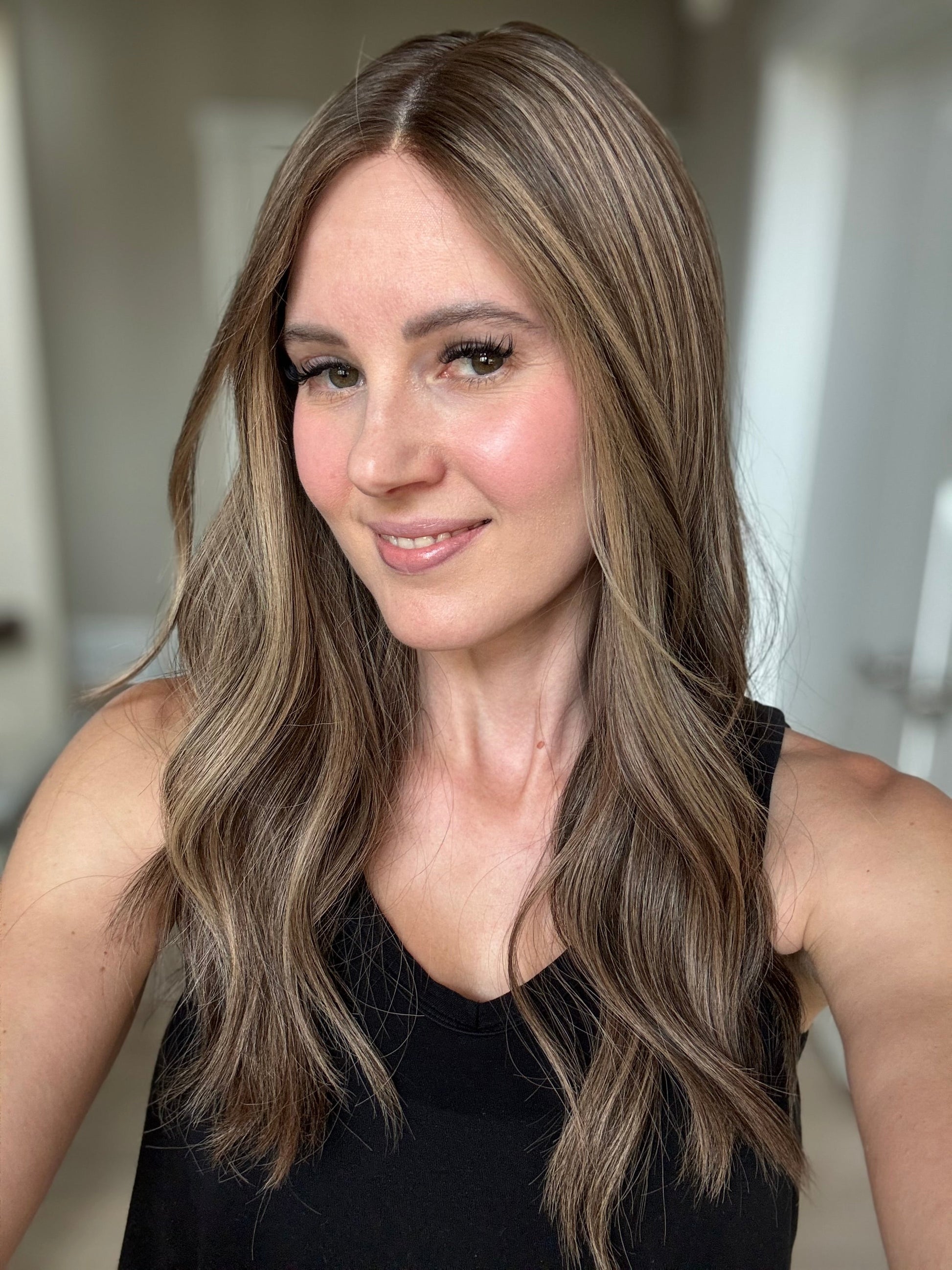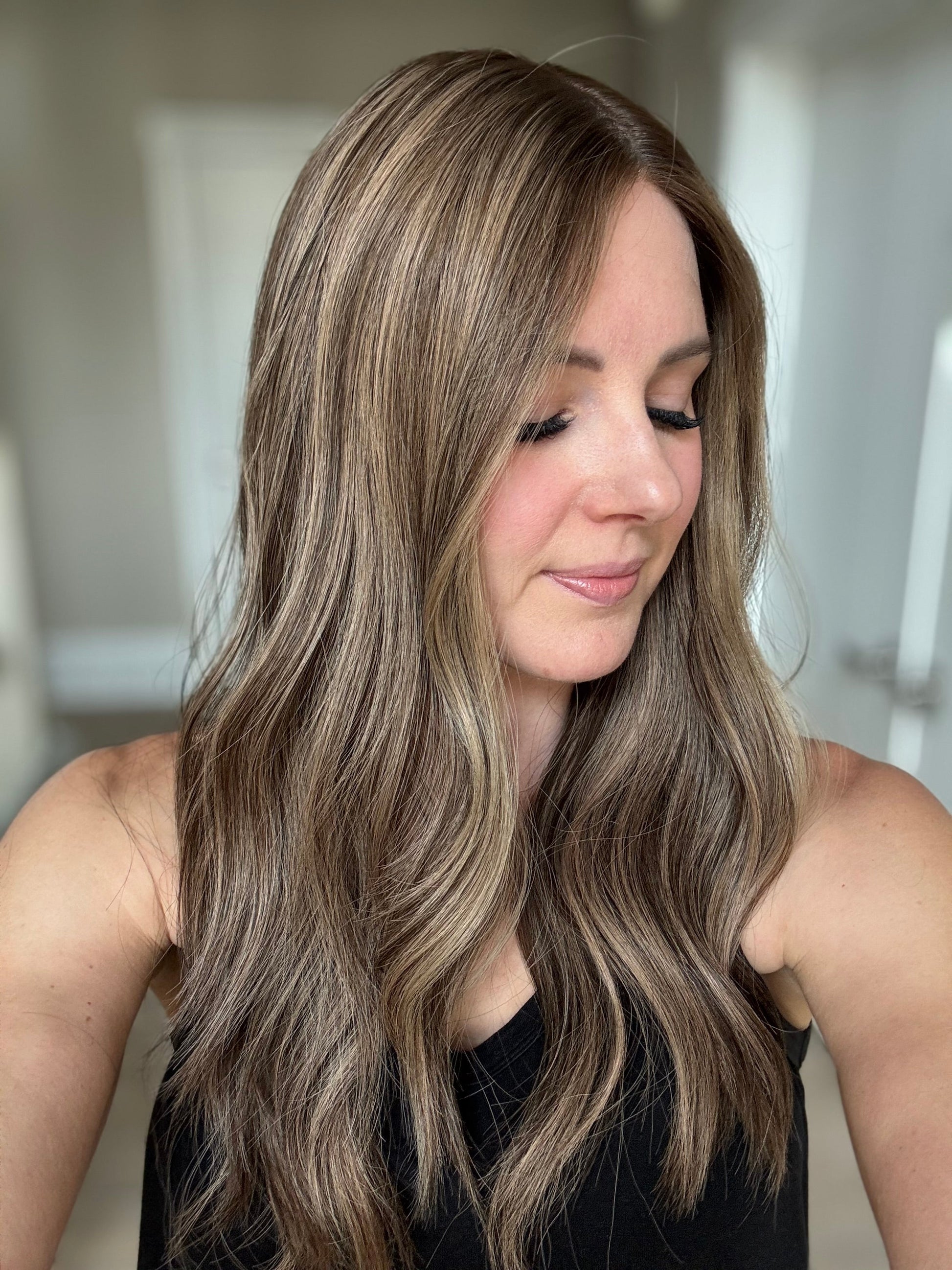 * Color: Medium neutral brown with dark beige blonde highlights.