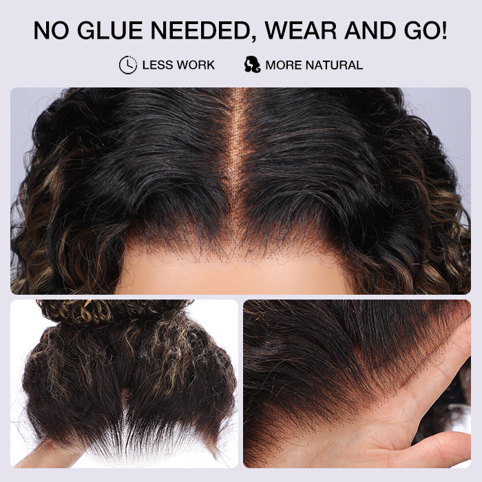 M1b/27 Blonde Highlight Curly Wigs Invisi-String Snug Fit 360 HD Lace Frontal Virgin Human Hair Wig For Women