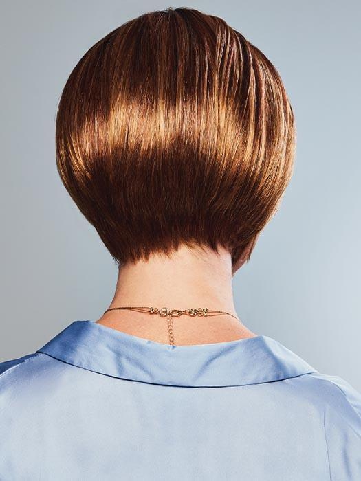 Chic Shot by is a perfectly tailored bob with a sheer and top for a light, cool fit and natural feel. An undercut bang gives you the option of styling the bangs forward or blending into the sides. Chin length layers at the sides gracefully frame the face while softly sculpted layering in the nape adds to the style’s unique silhouette.