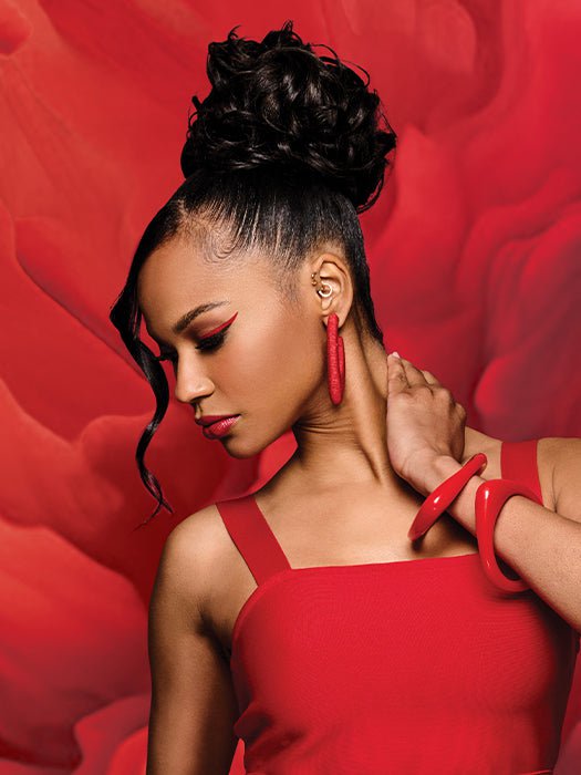 Clip It Classy by Kim Kimble is a glamorous hairpiece that easily attaches to your hair with a 3” claw clip. The Tru2Life heat friendly synthetic fiber is styled into loose barrel curls. You can smooth out the curls for an elegant look or brush through the curls for added volume.