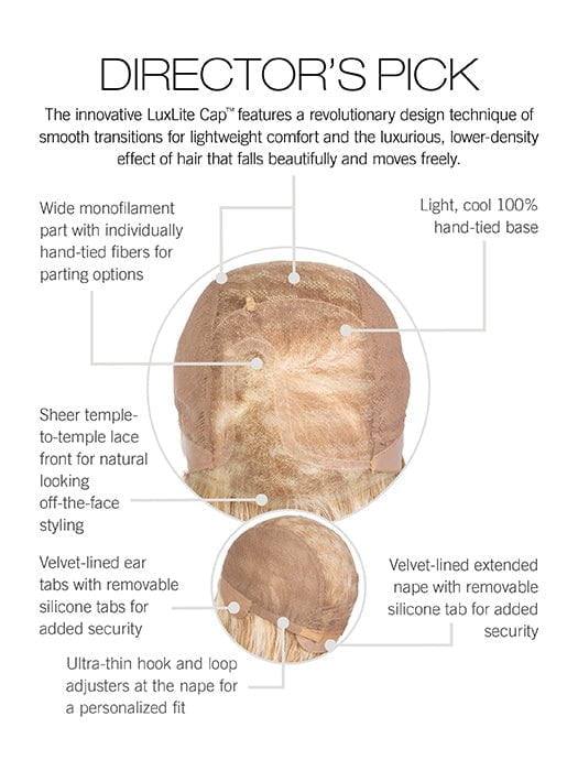 Director's Pick by is from their Sheer Luxury Collection. This voluminous wig is made with Tru2Life that offers endless styling possibilities. The soft tumbled waves rest above the shoulders for a stunning mid-length style. The stylish fringe can be brushed to the side or worn down to suit your fashion.