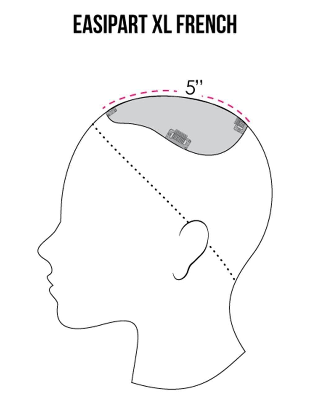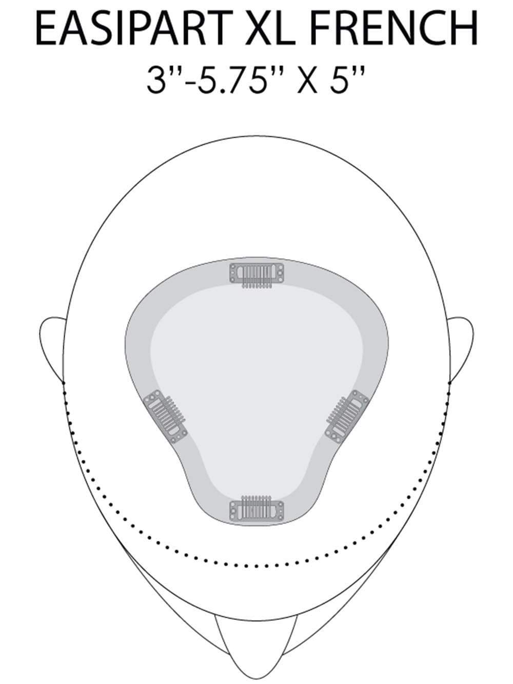 Ooh-la-la! easiPart French XL 18” by offers this one-piece clip-in volumizer, worn over the part, adds instant thickness with a supremely natural appearance. Beautiful Remy human hair is to a base using French knotting, a luxury technique that hides and protects the knots for an undetectable look and feel. Constructed on a larger base than , this topper provides extra coverage and volume for the beginning stage of hair loss.