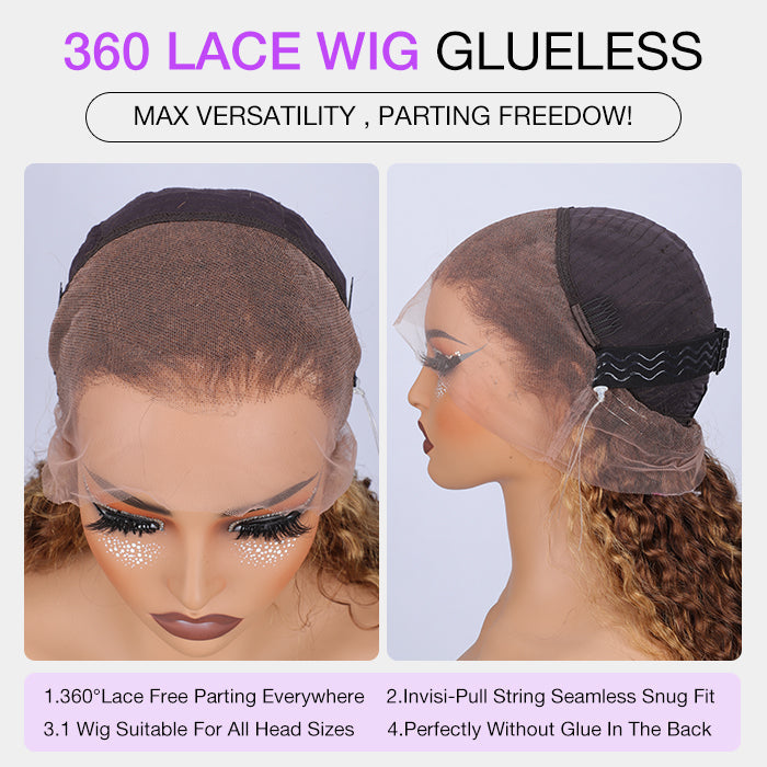 Highlights Pre Plucked 360 Transparent Lace Frontal Wig Straight Deep Wave Human Hair Wigs