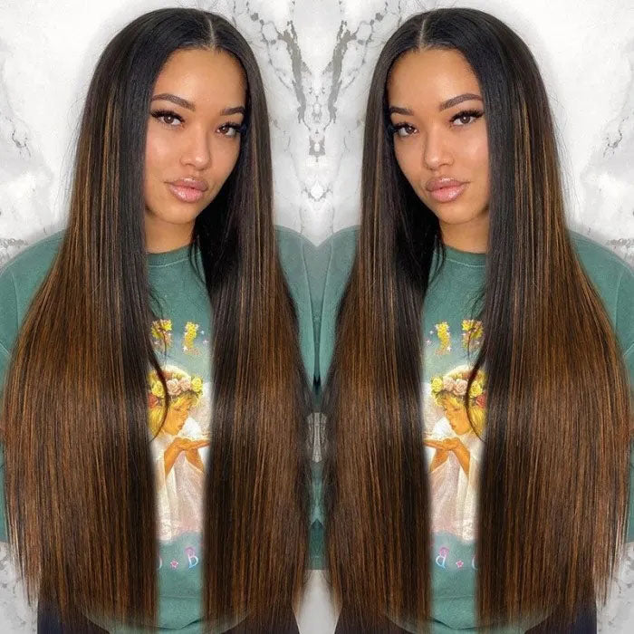 Hot Highlight Balayage Straight V/U Part Wig No Leave Out Glueless Human Hair Wigs Beginner Friendly