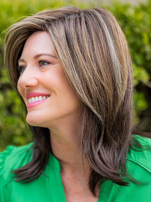Jackson by Noriko is a voluminous, layered wig with a trendy shoulder-length cut. It embodies feminine style with its subtle pointed ends and modern tease. A traditional cap was added to this wig to make it durable and keep the style looking polished all day long. This synthetic wig is ready-to-wear and looks and feels like natural hair. And the open wefting in the cap creates better air ventilation, which provides more coolness on the scalp. It's breathable and lightweight for a more comfortable fit. Jackson is customer approved!