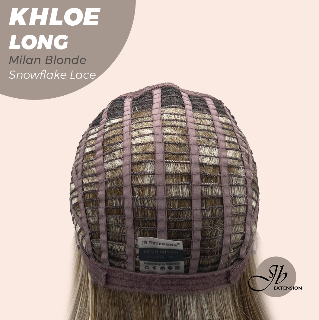 JBEXTENSION 18 Inches Milan Blonde Pre-Cut Snowflake Lace Frontlace Glueless Wig KHLOE LONG MILAN BLONDE【PERMATEASE】【BENDY EAR TABS】- S/M