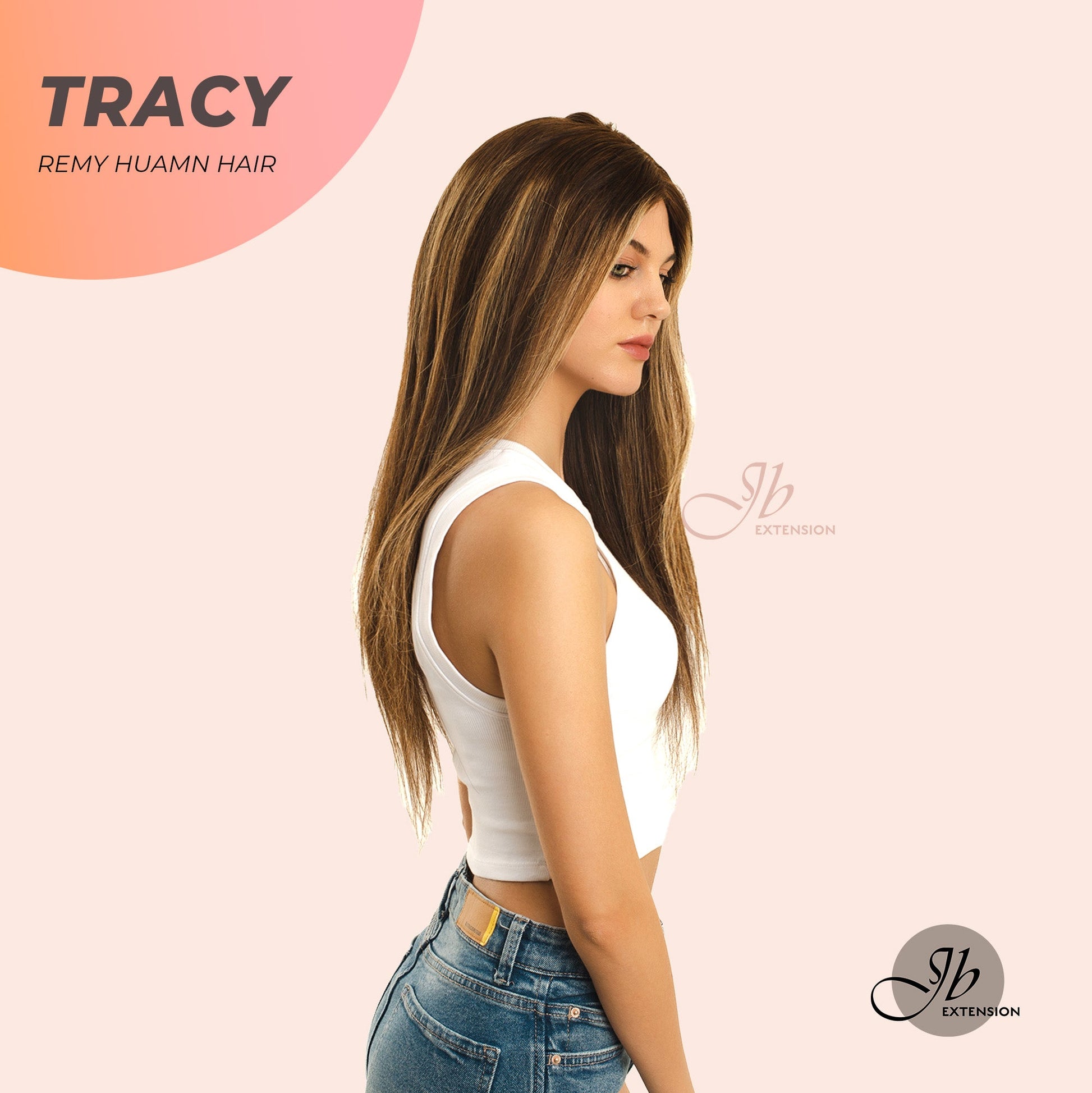 JBEXTENSION 18 Inches Straight Dark Brown With Highlight TRACY Women Wig REAL (GLUELESS)