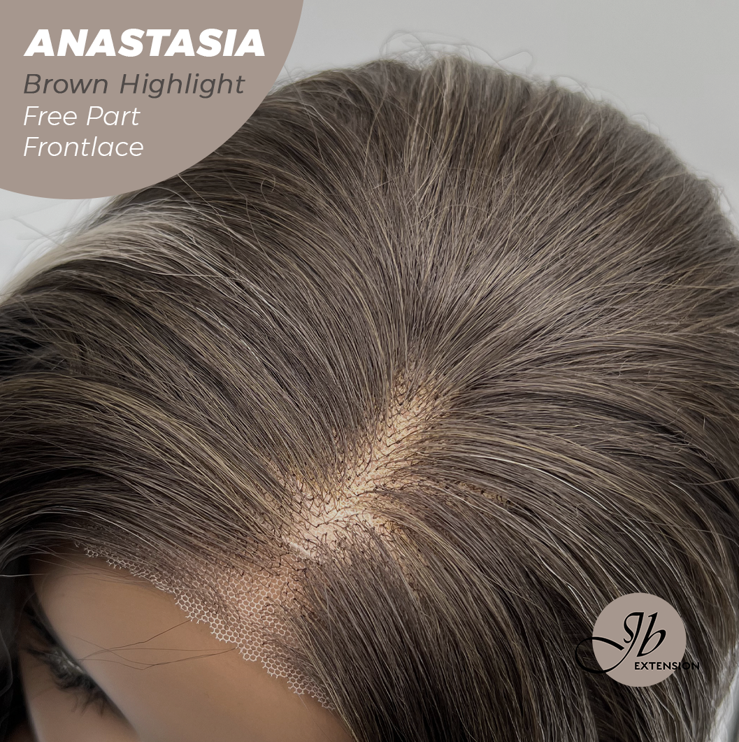 JBEXTENSION 20 Inches Brown Highlight Curly Pre-Cut 13X3 Lace Free Part Frontlace Glueless Wig ANASTASIA BROWN HIGHLIGHT