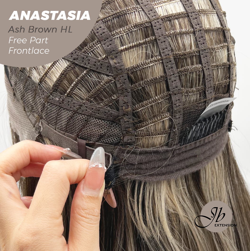 JBEXTENSION 20 Inches Ash Brown Highlight Curly Pre-Cut 13X3 Lace Free Part Frontlace Glueless Wig ANASTASIA ASH BROWN HIGHLIGHT