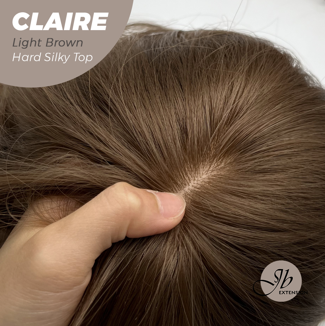 JBEXTENSION 22 Inches Scalpiana Light Brown 3.5X4 Hard Silky Top Natural Scalp Effect Women Wig With Bangs CLAIRE SILKY TOP LIGHT BROWN