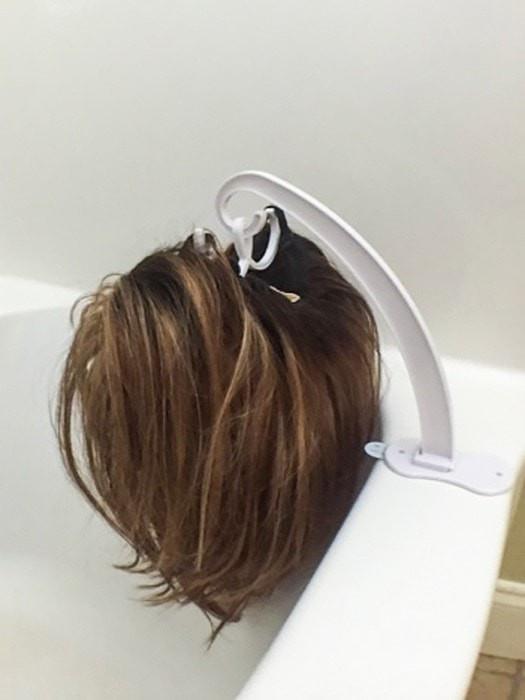 Dry & Style by Wigmate is designed and constructed to store and dry your wig the way you’ve always wanted to. The base with the adhesive back can adhere to any surface or shower tile. This attachment will allow you to hang dry your wig over your tub or shower floor, preventing water dripping on an unwanted surface. Once the wig is dry, the over door base is a discreet way to store your wig upside down, which boosts the style and adds a little volume.