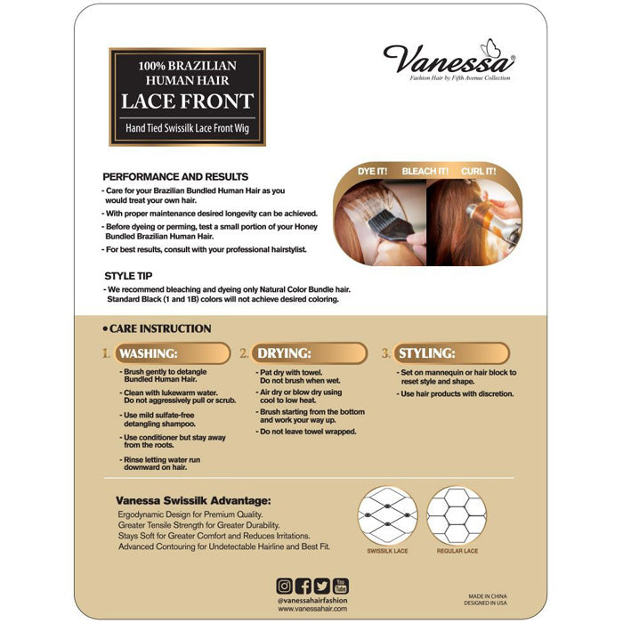 Vanessa 100% Brazilian Human Hair Swissilk Lace Front Wig - TMH LORIDA