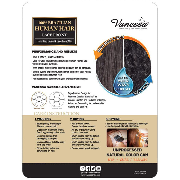 Vanessa 100% Unprocessed Human Hair Swissilk Lace Front Wig - WETGAVI