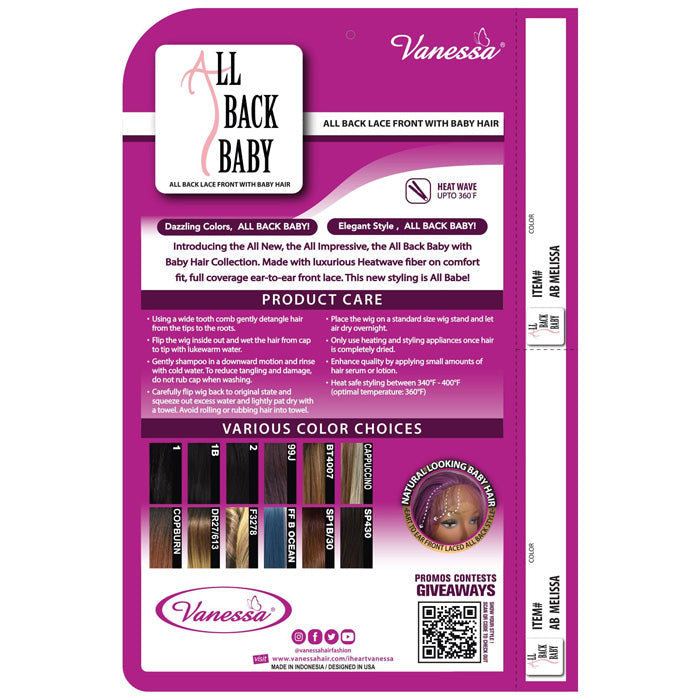 Vanessa All Black Style Full Coverage Ear to Ear Lace Front Wig - AB MELISSA