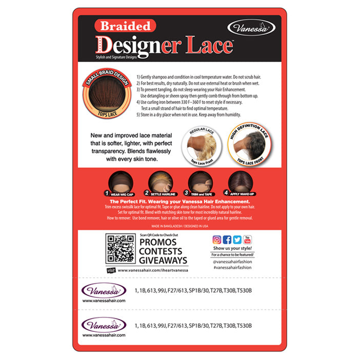 Vanessa Designer Lace Top Braid V-Line HD Lace Front Wig - TBV BOXY 16