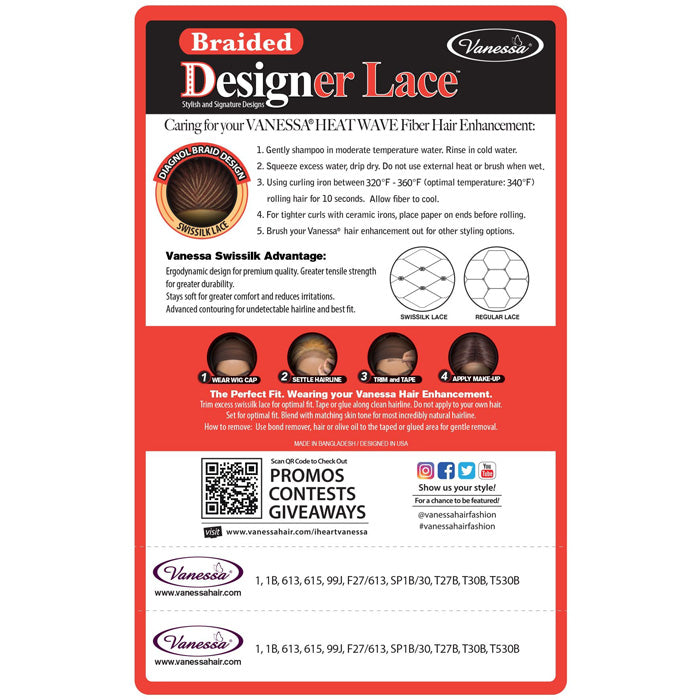 Vanessa Designer Lace Tops Diagonal Braid Swiss Lace Front Wig - BOXY 34